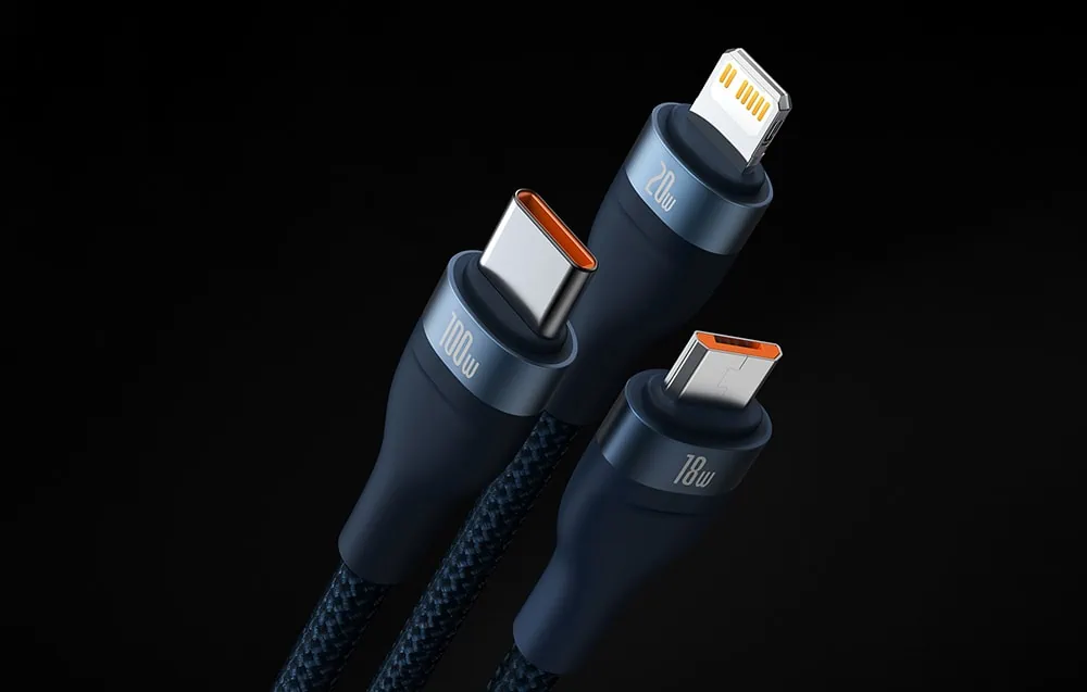 Kábel Baseus je vybavený 3 výstupnými portami a dvojitým vstupným portom, takže môžete nabíjať 3 zariadenia súčasne a ušetriť čas. Podporuje aj 100W rýchle nabíjanie. Vyniká širokou kompatibilitou a solídnym spracovaním.