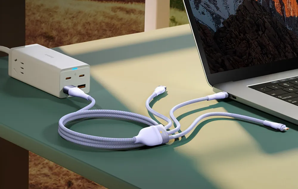Kábel Baseus je vybavený 3 výstupnými portami a dvojitým vstupným portom, takže môžete nabíjať 3 zariadenia súčasne a ušetriť čas. Podporuje aj 100W rýchle nabíjanie. Vyniká širokou kompatibilitou a solídnym spracovaním.