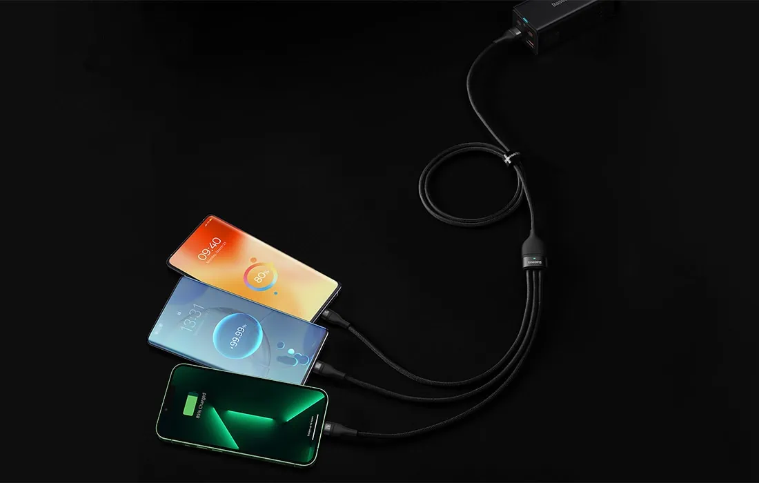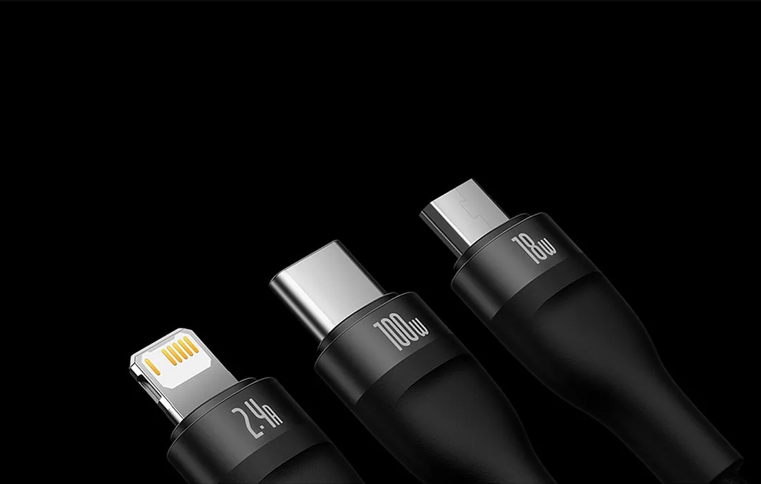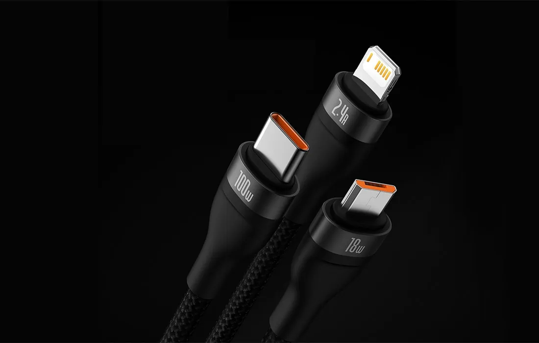 Pohodlne nabíjajte až 3 zariadenia súčasne. Kábel USB 3 v 1 Séria Baseus Flash je vybavená 3 konektormi – USB-C, lightning a micro USB. Umožňuje rýchle nabíjanie s výkonom až 100 W. Umožňuje tiež prenášať súbory rýchlosťou až 480 Mb/s (na konektore USB-C / lightning). Zároveň je mimoriadne odolný a zaručuje bezpečnosť používania.