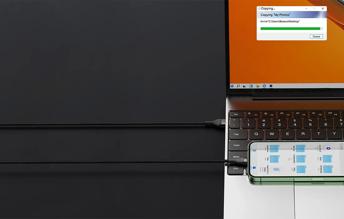 Často prenášate súbory medzi zariadeniami? Kábel Baseus vám uľahčí aj túto úlohu! Produkt umožňuje prenášať dáta rýchlosťou až 480 Mb/s (len na konektoroch Lightning a USB-C). Už nemusíte donekonečna čakať, kým sa vaše súbory dostanú na miesto určenia – teraz môžete skopírovať všetko, čo potrebujete, za krátky čas!