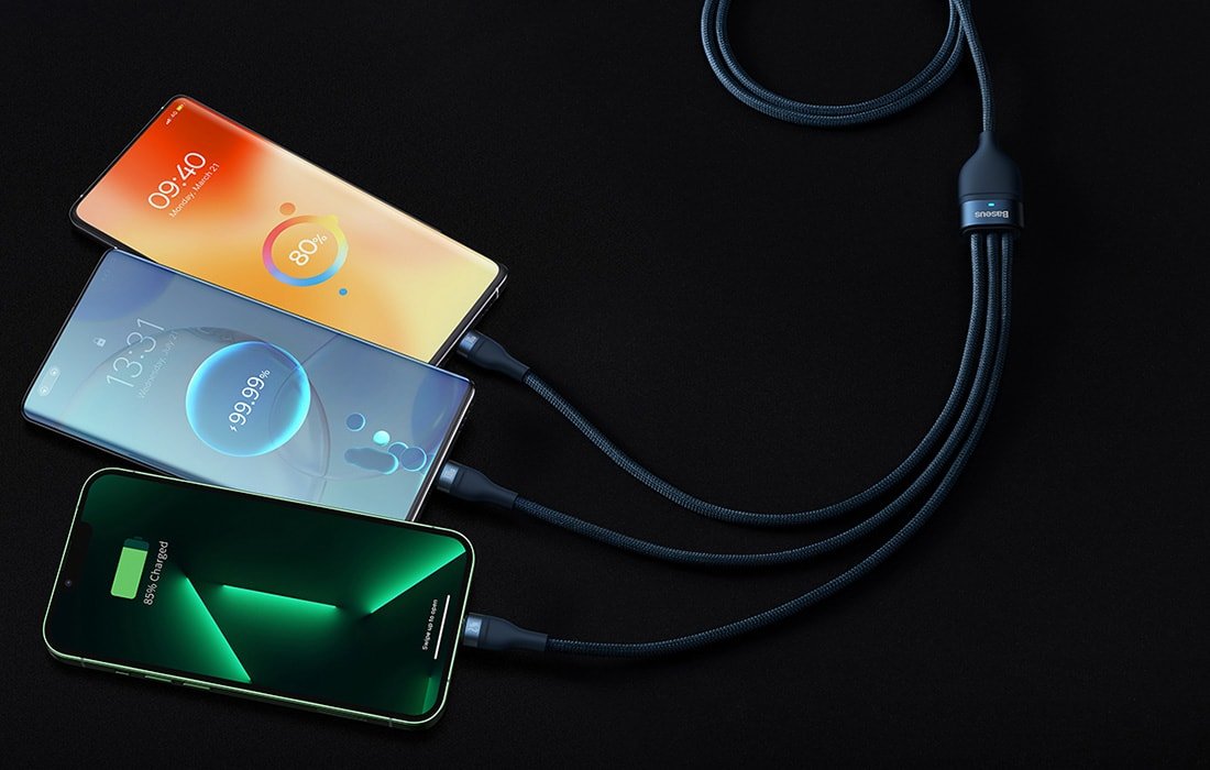 Už nemusíte čakať na nabitie jedného zariadenia, kým pripojíte ďalšie! Vďaka 3 dostupným konektorom (USB-C, micro USB a lightning) môžete ľahko napájať až 3 zariadenia súčasne. Kábel sa vyznačuje širokou kompatibilitou. Pomocou neho môžete nabíjať smartfóny iPhone, Xiaomi, Huawei, Samsung a OPPO, tablety, powerbanky a stolové ventilátory.