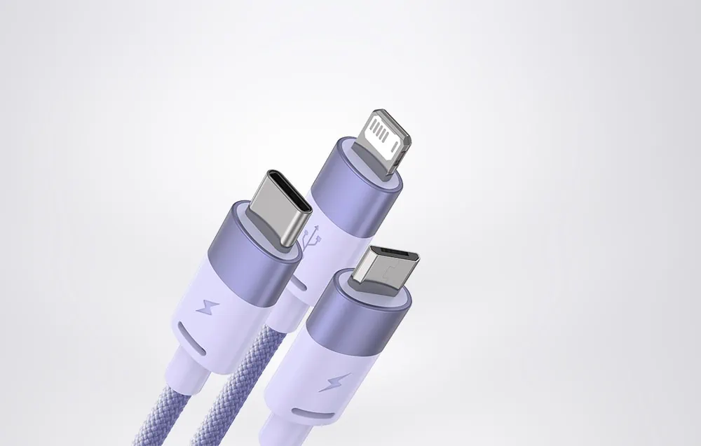Kábel USB 3 v 1 Baseus StarSpeed, USB-C + micro USB + Lightning, 3,5 A, 1,2 m (fialový)