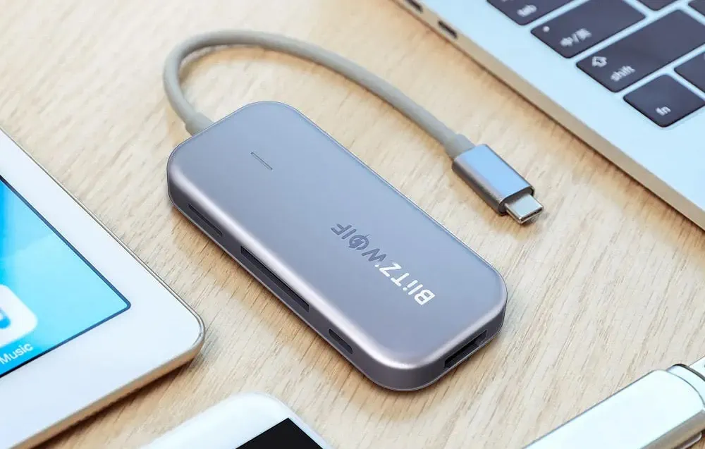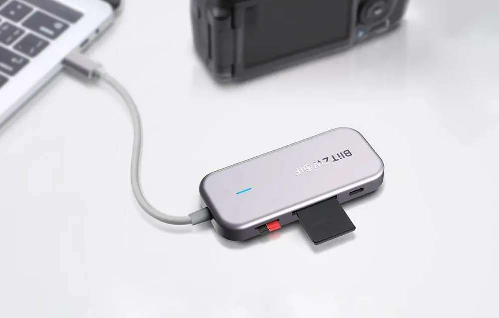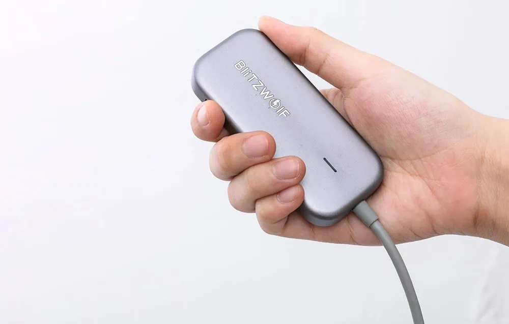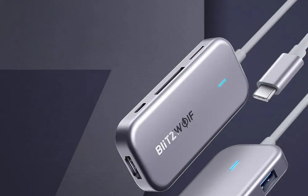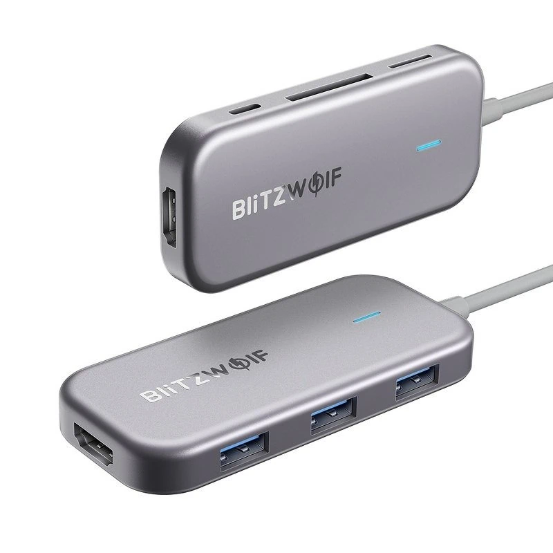 Adaptér od spoločnosti BlitzWolf je produkt 7 v 1. Je vybavený portom USB-C, ktorý podporuje rýchle nabíjanie PD, 3 portami USB 3.0, portom 4K HDMI a dvoma vstupmi pre pamäťové karty TF a SD. Môžete k nemu pripojiť svoj smartfón, notebook, tablet, počítač a iPad. Umožňuje rýchly prenos súborov a má množstvo bezpečnostných funkcií na ochranu vášho zariadenia pred prepätím, nadprúdom atď.