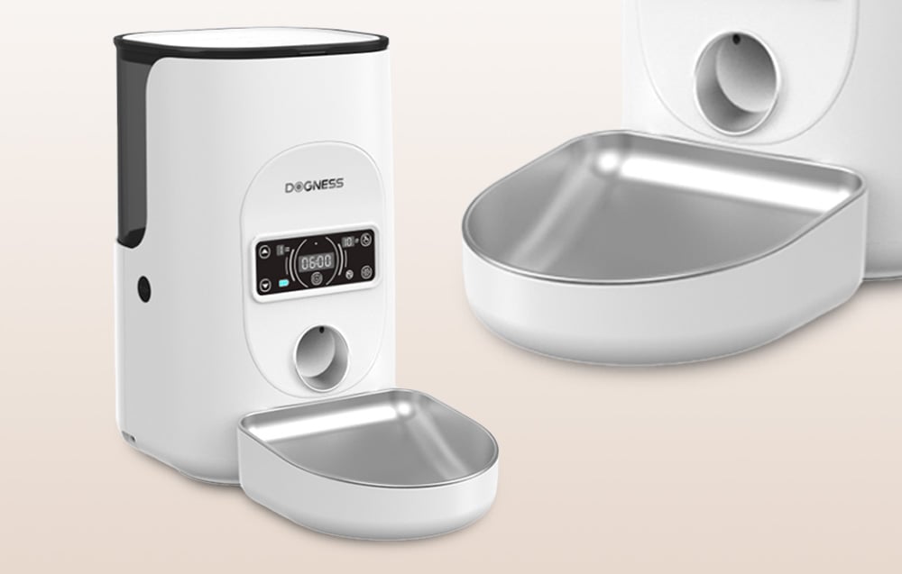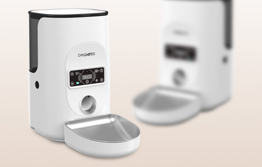Inteligentný dávkovač krmiva Dogness F17 4 l s nádobou z nehrdzavejúcej ocele (biely)