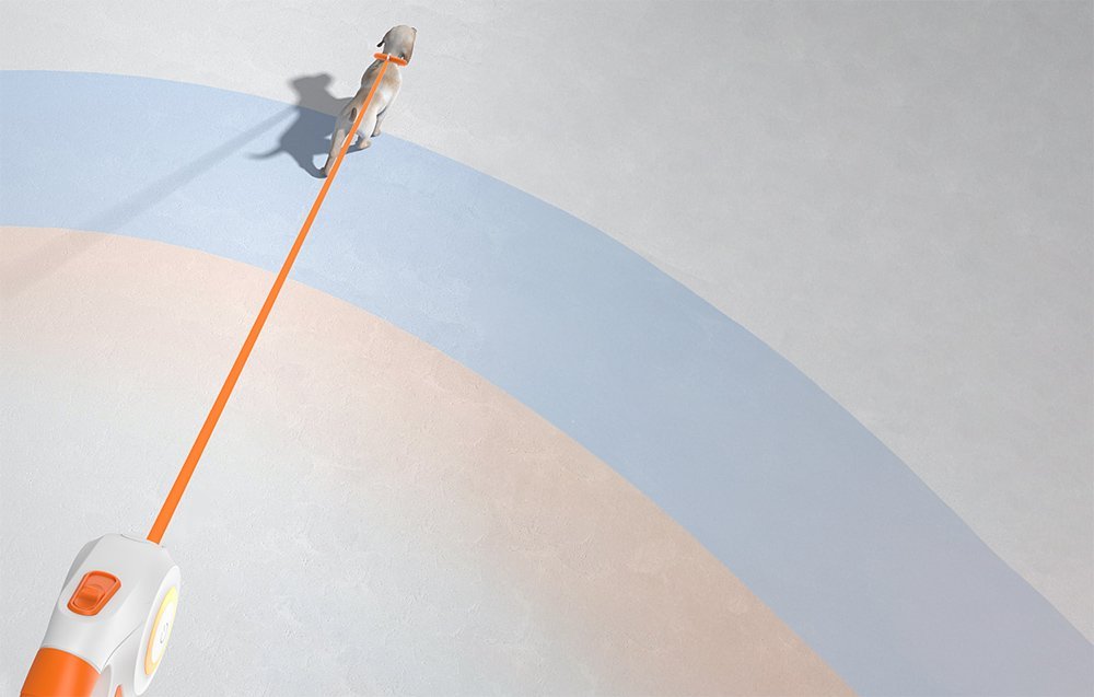 Šnúrka sa otáča o 360°, nezamotáva sa a je odolná voči poškodeniu. Sťahovací otvor v tvare písmena U vám umožní kontrolovať vášho domáceho miláčika z akéhokoľvek uhla. Vďaka tomu môžete voľne venčiť svojho chlpatého priateľa s vedomím, že sa od vás nevzdialia na nebezpečnú vzdialenosť. Ergonomická rukoväť je navyše vyrobená z protišmykového materiálu TPR pre väčšie pohodlie. Na napájanie zariadenia budete potrebovať dve batérie AAA (je potrebné zakúpiť samostatne).