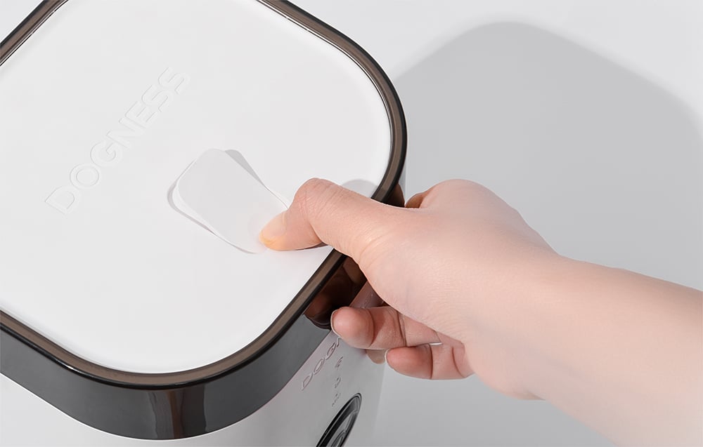 Dávkovač Dogness F10 má kapacitu 3,6 litra, čo vám umožní uskladniť približne 1,8 kg suchého krmiva. To stačí až na 20 dní pravidelného kŕmenia vašej mačky! Navyše, vďaka netesniacej konštrukcii a silikónovej gélovej vysúšacej kazete zostáva krmivo čerstvé a suché, chránené pred vlhkosťou a hmyzom. Okrem toho integrovaný vývod s funkciou automatického zatvárania ešte viac chráni krmivo pred znečistením.