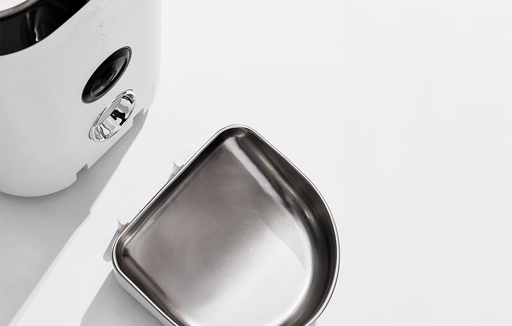 Miska na jedlo zariadenia je vyrobená z nehrdzavejúcej ocele 304, ktorá je bezpečná pre domáce zvieratá a môže sa používať v kontakte s potravinami. Dávkovač sa tiež veľmi ľahko rozoberá a čistí – môžete ho ľahko udržiavať v perfektnom stave. Svojho domáceho miláčika môžete kedykoľvek nakŕmiť aj ručne stlačením príslušného tlačidla. Ďalšou výhodou dávkovača je vylepšený horný kryt, ktorý účinne zabraňuje otvoreniu vášho domáceho maznáčika. Teraz sa ani ten najzvedavejší domáci maznáčik nedostane ku krmivu a nevezme si nadbytočnú porciu! Dávkovač sa vyznačuje aj farebným LED podsvietením.
