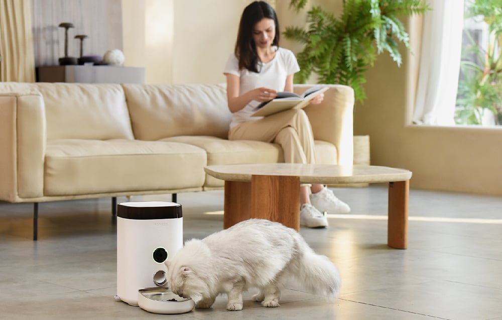 Špeciálna mobilná aplikácia umožňuje jednoducho nastaviť plán kŕmenia a sledovať históriu kŕmenia. S jej pomocou môžete naplánovať až 20 jedál denne (až 39 porcií na jedno jedlo) s presnosťou na 5 g na porciu. Teraz sa môžete ľahko postarať o optimálnu výživu svojho domáceho maznáčika podľa jeho potrieb! Navyše zabudovaný reproduktor a mikrofón dávkovača vám umožňujú kedykoľvek komunikovať s vaším domácim miláčikom. To je ideálne pre majiteľov, ktorí trávia veľa času mimo domova! Okrem toho aplikácia ponúka funkciu hlasového záznamu, takže môžete svojho domáceho miláčika privolať k miske v určitom čase.