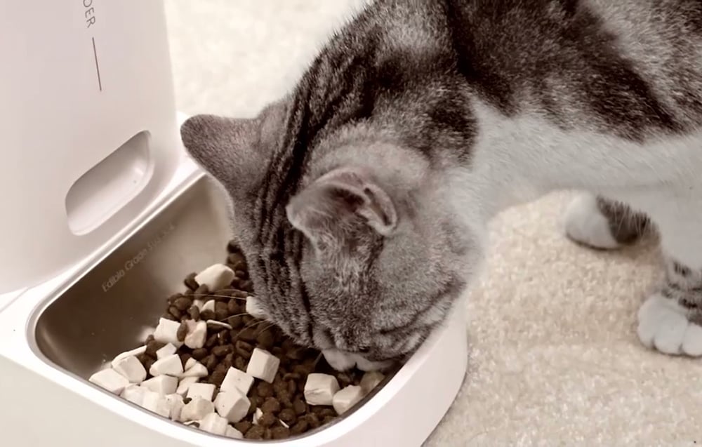 Miska je vyrobená z nehrdzavejúcej ocele 304, ktorá je bezpečná pre domáce zvieratá, odolná voči škvrnám, ľahko sa čistí a nefarbí. Protišmykové prvky zabezpečujú stabilitu a zabraňujú posúvaniu pri jedení. Použitie gumového miešadla v dávkovacom mechanizme zabraňuje zablokovaniu potravy a zabezpečuje plynulý tok potravy.