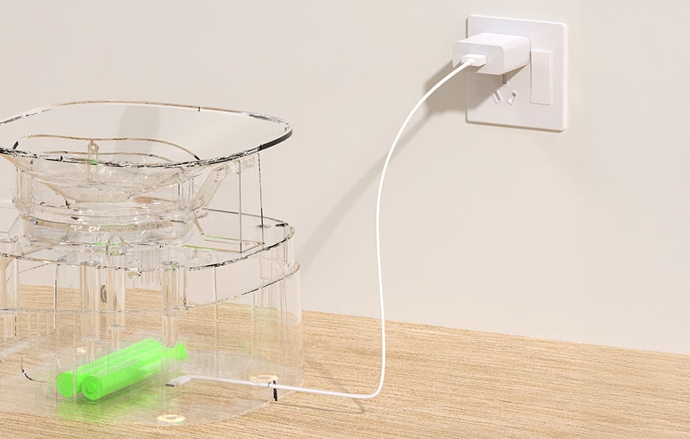 S dávkovačom Rojeco si môžete vydýchnuť s vedomím, že váš domáci miláčik dostane jedlo vždy v určený čas. Môžete ho napájať priamo zo siete (jednosmerný prúd) alebo pomocou štyroch batérií AA (nie sú súčasťou balenia). V prípade výpadku prúdu sa zariadenie automaticky prepne na napájanie z batérií, aby sa zabezpečila nepretržitá prevádzka.