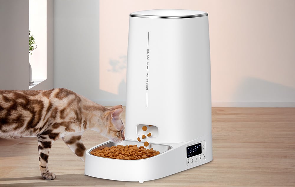 Majte istotu, že váš domáci miláčik dostáva pravidelnú výživu. Automatický dávkovač krmiva Rojeco Button Version je určený pre mačky a malé až stredne veľké psy. Jeho kapacita je 4 litre, takže doň môžete uložiť až 2,5 kg krmiva. Zariadenie umožňuje naplánovať až 6 jedál denne. Je vyrobený z odolného ABS plastu a nehrdzavejúcej ocele 304 – je teda pre domáce zvieratá úplne bezpečný. Napájať ho môžete 2 spôsobmi. Ovládanie uľahčuje LED displej.