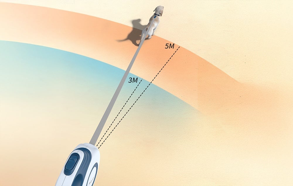 Použitro z odolného ABS plastu účinne chráni mechanizmus pred poškodením a silikónový kryt remienka zabraňuje jeho odieraniu. Vodítko je vybavené praktickým vreckovým kontajnerom, ktorý uľahčuje udržiavanie čistoty počas prechádzok. Vďaka nízkej hmotnosti (256,5 g) je výrobok ideálny na každodenné prechádzky aj dlhšie túry.