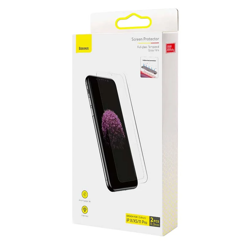 Baseus 0,3 mm celosklenená fólia z tvrdeného skla (balenie 2 ks) pre iPhone X/XS/11 Pro 5,8 palca