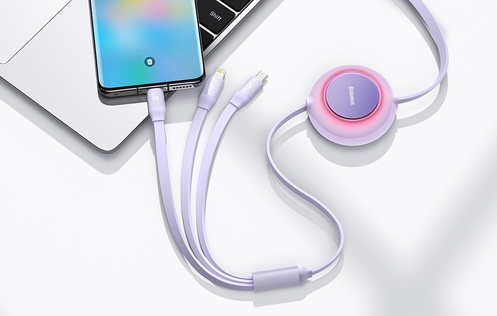 S káblom USB 3 v 1 Baseus Bright Mirror získate prístup k rýchlemu nabíjaniu notebookov, zariadení Apple a ďalších zariadení. Kábel tiež umožňuje prenos dát (Lightning) rýchlosťou až 480 Mb/s. Zasúvateľný kompaktný dizajn zaručuje jednoduché skladovanie a prepravu a zabudovaný bezpečnostný systém chráni pripojené zariadenia.