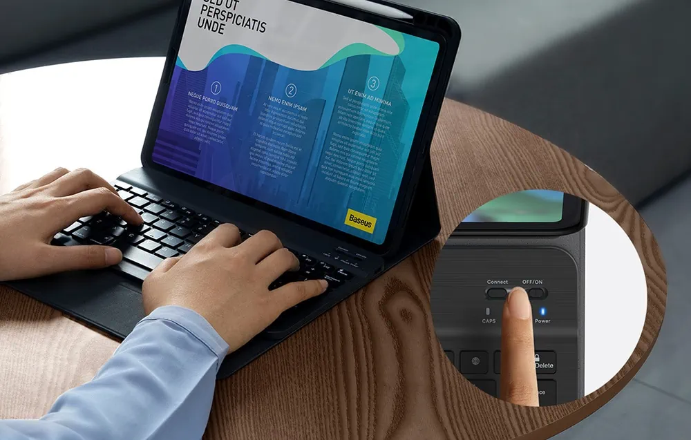 Vytvorte si pohodlnú súpravu na prácu s puzdrom na tablet a klávesnicu od spoločnosti Baseus. Produkt sa rýchlo a efektívne pripojí k vášmu zariadeniu bez toho, aby spôsoboval rušenie. Puzdro ponúka kvalitné multifunkčné klávesy, ktoré vám zlepšia prácu. Materiál puzdra je ľahký a šetrný k pokožke. Okrem toho poskytuje výnimočné pohodlie a stabilitu vďaka zabudovanému stojanu.