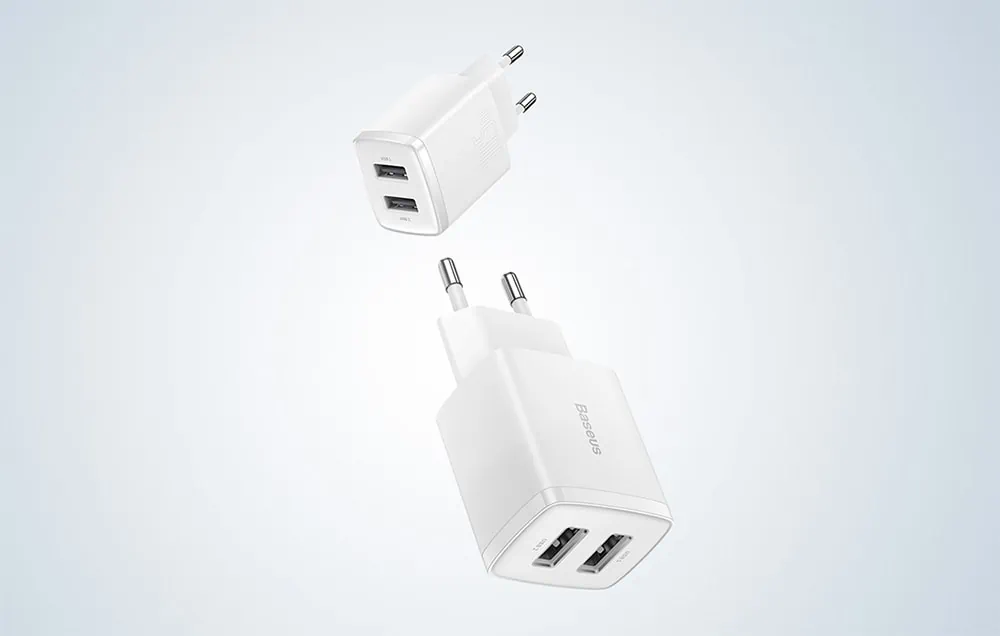 Ľahká a prenosná kompaktná rýchlonabíjačka Baseus je ideálna na doma aj na cesty. Je vybavená 2 portami USB, takže môžete pohodlne nabíjať až 2 zariadenia súčasne. Zaručuje tiež bezpečnosť používania a vyznačuje sa širokou kompatibilitou.