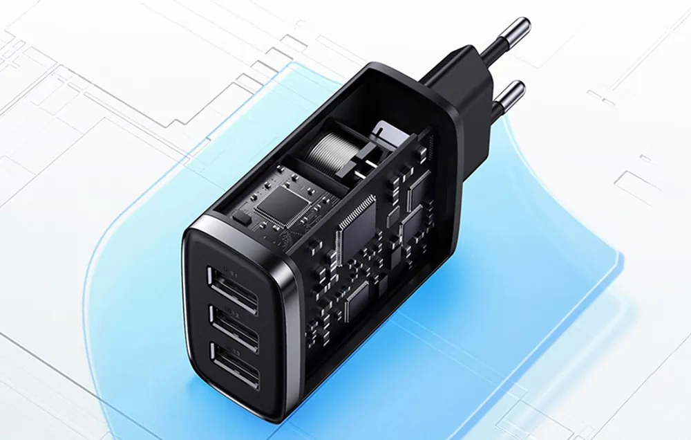 Používate veľa rôznych zariadení a hľadáte spôsob, ako ich rýchlo a bezpečne nabíjať? Kompaktná rýchlonabíjačka Baseus má viacportový výstup, ktorý vám umožní pripojiť až 3 zariadenia naraz. Vyznačuje sa širokou kompatibilitou s väčšinou populárnych zariadení a vďaka zabudovanému čipu poskytuje bezpečné napájanie. Okrem toho je zariadenie certifikované podľa ROHS a má 6-stupňovú ochranu.