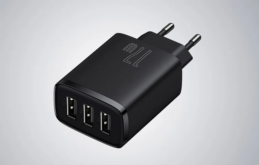 Kompaktná rýchlonabíjačka Baseus, 3x USB, 17 W (čierna)
