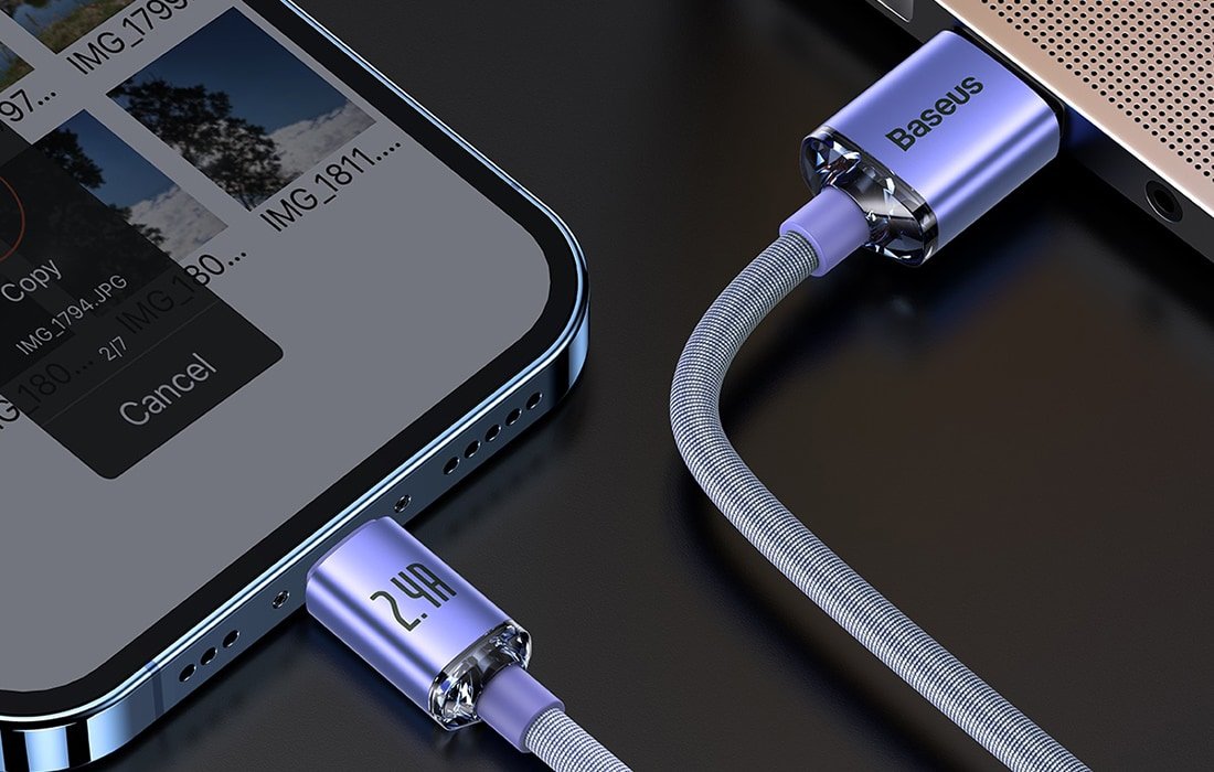 Kábel Baseus Crystal Shine USB na Lightning, 2,4 A, 1,2 m (fialový)