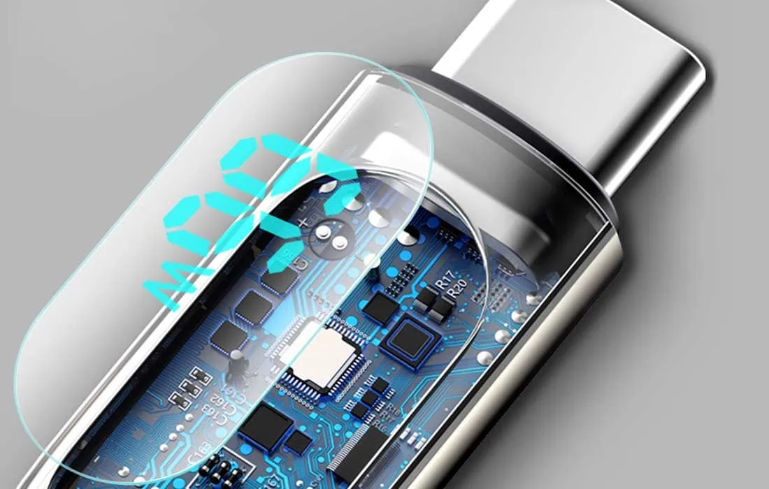 S funkčným káblom Display môžete okamžite nabíjať svoj smartfón a prenášať súbory úžasnou rýchlosťou. Využíva tiež 66W výkon na zabezpečenie rýchleho nabíjania. Prostredníctvom zabudovaného displeja je možné pravidelne kontrolovať výkon. Výrobok je odolný a odolný voči drobným poraneniam a jeho pokročilý čip zaisťuje úplnú bezpečnosť počas používania, čím úplne chráni všetky vaše zariadenia pred poškodením.