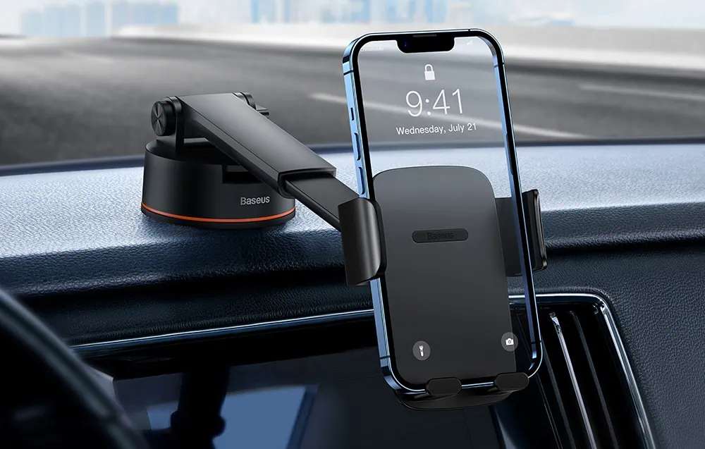 Pohodlne používajte navigáciu alebo prijímajte hovory počas jazdy. Držiak Baseus Easy Control Clamp poskytuje spoľahlivú stabilitu. Jeho používanie je mimoriadne jednoduché a pohodlné. Okrem toho umožňuje aj nastavenie uhla pohľadu podľa vašich potrieb. Vďaka silnej prísavke ho môžete ľahko pripevniť na palubnú dosku alebo čelné sklo.