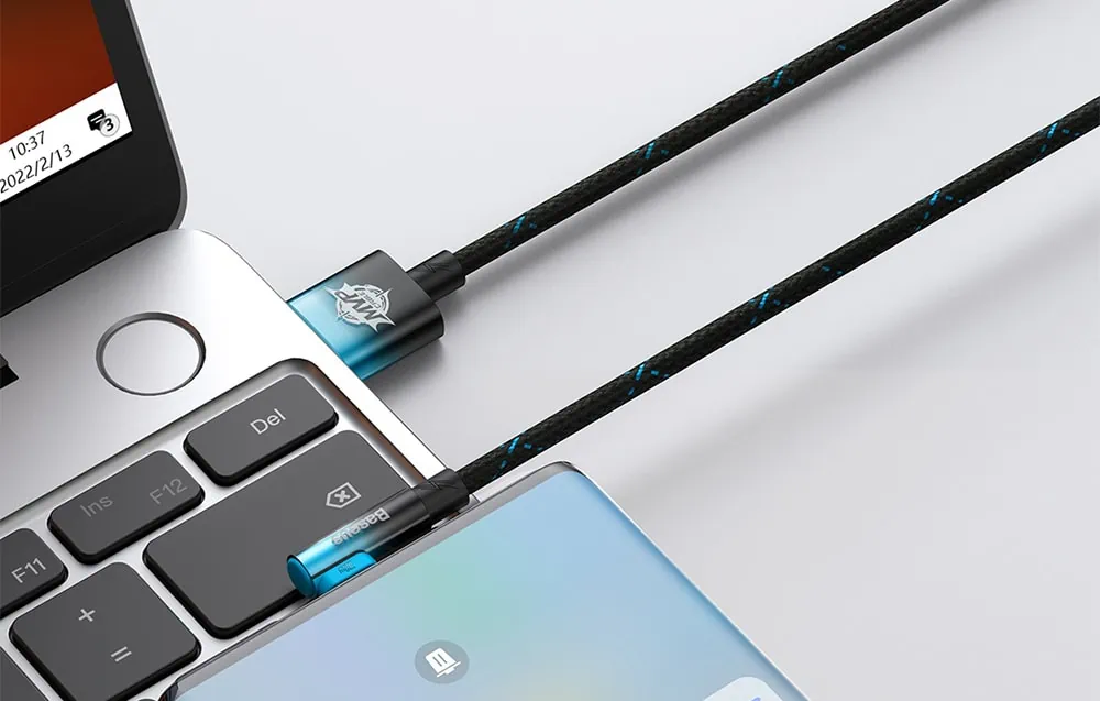 Uhlový kábel Baseus Elbow USB na USB-C bude skvelou voľbou nielen pre hráčov. Poskytuje rýchle nabíjanie s výkonom až 100 W a umožňuje prenášať súbory rýchlosťou až 480 Mb/s. Konektor osadený pod uhlom 90° vám nebude prekážať počas hrania a vďaka pevnej a odolnej konštrukcii vám produkt bude dlho perfektne slúžiť.