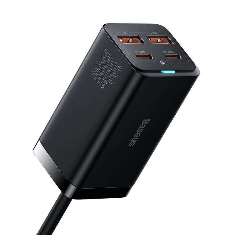 Baseus GaN3 Pro 2xUSB-C + 2xUSB sieťová nabíjačka, 100 W (čierna).