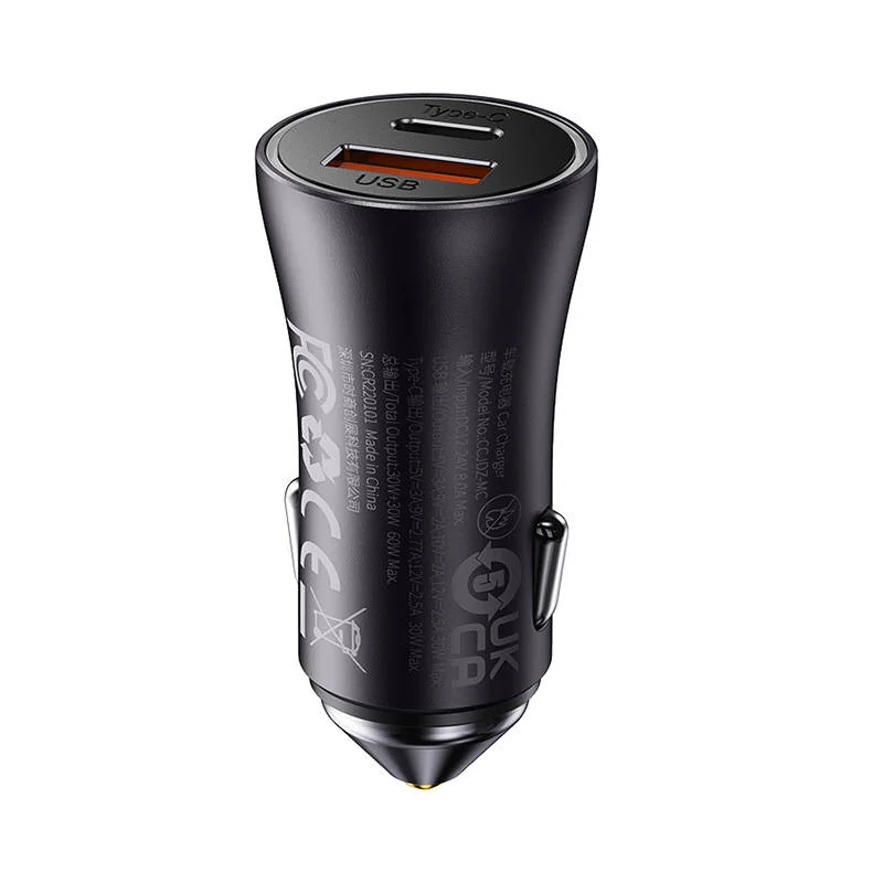 Táto nabíjačka do auta Baseus umožňuje rýchlo nabíjať až 2 zariadenia súčasne. Jej celkový výstupný výkon dosahuje 60 W. Zariadenie je kompatibilné s vozidlami s napätím 12-24 V a poskytuje bezpečnosť používania. Je vybavená 2 portami – USB a USB-C. Vyniká tiež mimoriadne robustným a zároveň elegantným dizajnom.