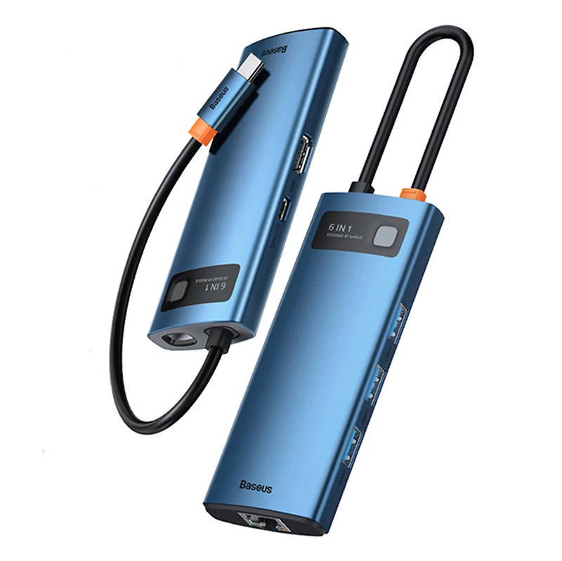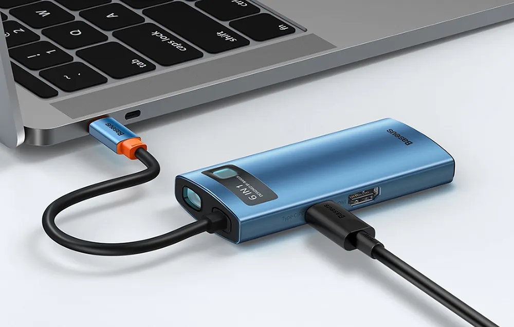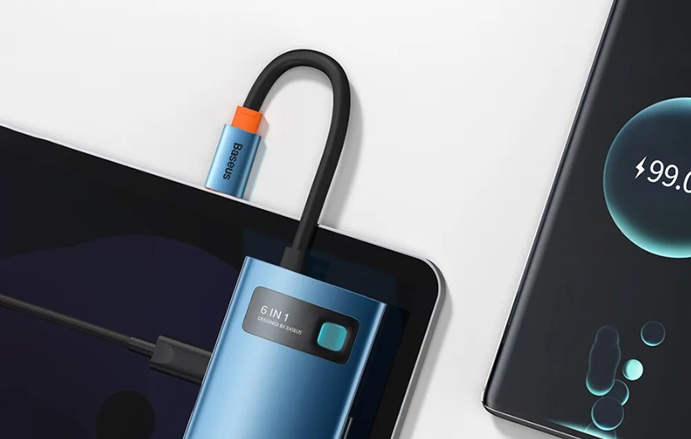 Pomocou adaptéra Baseus môžete okamžite prenášať dáta (500 MB/s), rýchlo nabíjať svoje zariadenia (PD 100 W) alebo zobrazovať súbory na väčšej obrazovke vo vynikajúcej kvalite (4K@30 Hz). S adaptérom WKWG000003 získate aj rýchlejší prístup na internet. Príslušenstvo je vybavené až 6 portmi, takže sa už nemusíte obávať nedostatku vhodných vstupov na telefóne, notebooku atď. O stave zariadenia vás navyše bude informovať LED indikátor.
