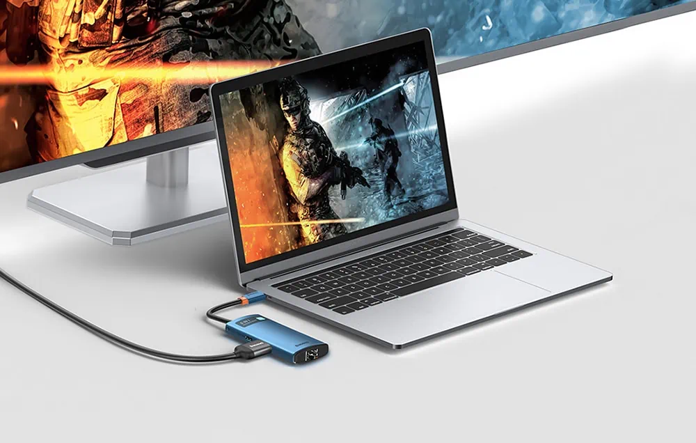 Na nabíjanie MacBooku používajte adaptér Baseus. Zariadenie vám umožní okamžite obnoviť energiu vášho notebooku vďaka protokolu rýchleho nabíjania PD 100 W. Okrem toho môžete pomocou portov USB 3.0 rýchlo prenášať súbory, ako sú fotografie, videá, a port RJ45 sa osvedčí pri sťahovaní väčších súborov a poskytne rýchly a stabilný prístup na internet.