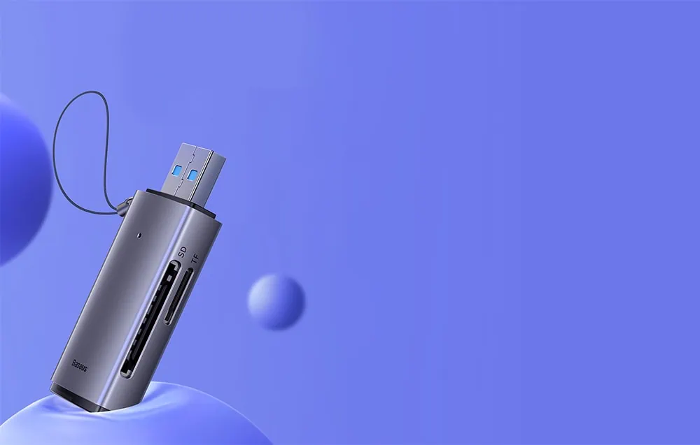 Spravujte svoje súbory rýchlo a pohodlne. Pomôže vám čítačka pamäťových kariet Baseus, ktorá je vybavená rozhraním USB a podporuje karty SD a TF. Príslušenstvo sa vyznačuje rýchlosťou až 104 MB/s a podporovaná kapacita je 2 TB. Medzi jej prednosti patrí aj robustná konštrukcia, kompaktné rozmery a široká kompatibilita so systémom.