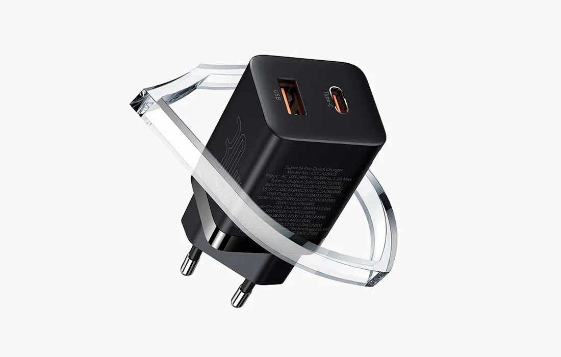 Rýchlonabíjačka Baseus Super Si Pro USB + USB-C 30 W (biela)
