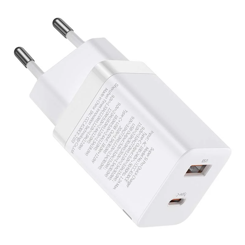 Príslušenstvo je vybavené dvojitým portom: USB a USB-C, takže môžete nabíjať 2 zariadenia súčasne. Kompaktný dizajn umožňuje pohodlné skladovanie a množstvo bezpečnostných prvkov chráni vaše zariadenie a príslušenstvo pred poškodením. Výrobok podporuje aj protokoly rýchleho nabíjania, ktoré vám ušetria čas. Striedavé napätie 100-240 V vám umožní používať ho kdekoľvek na svete.