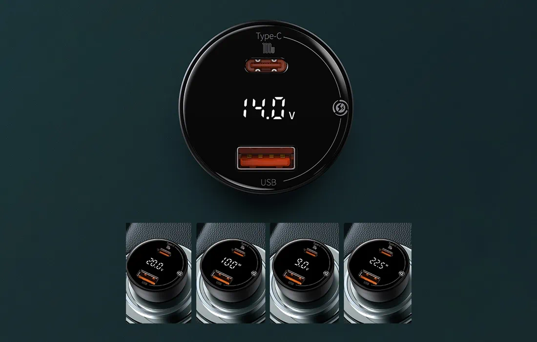 Vybil sa vám počas cestovania telefón alebo notebook? Teraz to už nie je problém! Autonabíjačka Baseus je vybavená 2 portami – USB-C a USB, ktoré vám umožnia rýchlo nabíjať až 2 zariadenia súčasne! Jej maximálny výkon dosahuje 100 W. Výrobok je kompatibilný s väčšinou vozidiel s napätím 12 – 24 V a vďaka použitým technologickým riešeniam zaručuje bezpečnosť používania. Nabíjačka je tiež vybavená praktickým digitálnym displejom.