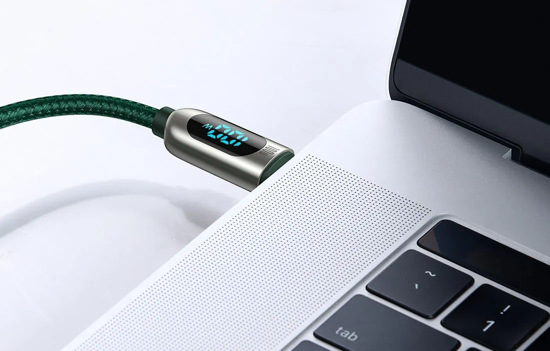 S funkčným káblom Display môžete okamžite nabíjať svoj smartfón a prenášať súbory úžasnou rýchlosťou. Kábel USB-C podporuje systém ultrarýchleho nabíjania PD 100 W. Prostredníctvom zabudovaného displeja je možné pravidelne kontrolovať napájanie. Výrobok je trvanlivý a odolný voči drobným poraneniam a jeho pokročilý čip zaručuje úplnú bezpečnosť počas používania a úplne chráni všetky zariadenia pred poškodením.