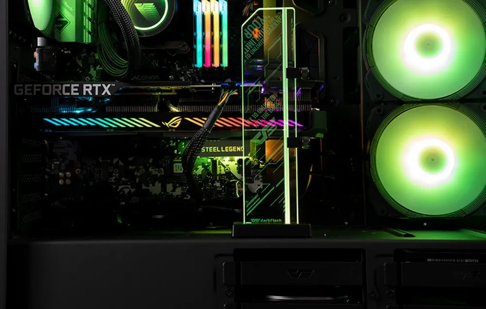 Držiak Darkflash DL280 vám umožní stabilne nainštalovať grafickú kartu do počítačovej skrine. Vďaka magnetickej základni sa ľahko inštaluje a priložené držiaky vám umožnia pohodlné nastavenie podľa vašich potrieb. Výrobok je vyrobený z tvrdeného skla s hrúbkou 6 mm a vyznačuje sa aj podsvietením ARGB. Môžete ho tiež synchronizovať so základnou doskou.