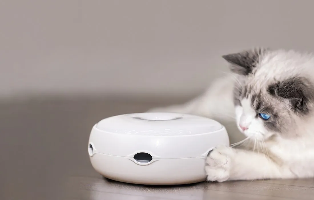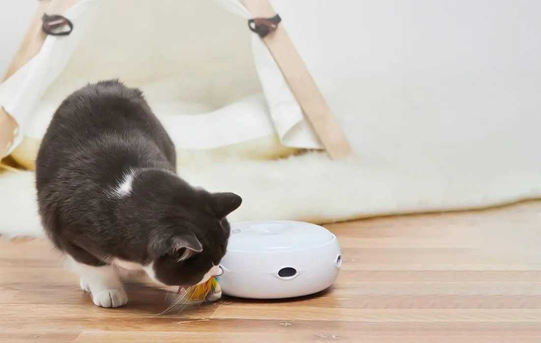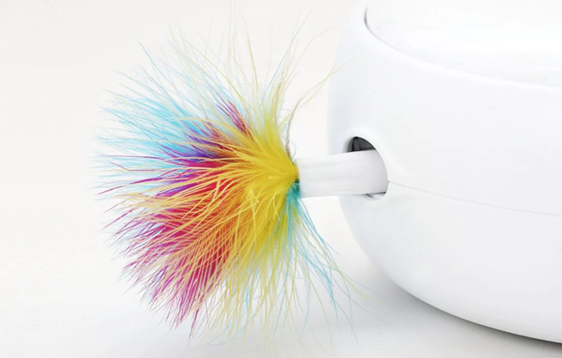 Zariadenie je praktické a kompaktné a jeho tvar pripomína obľúbenú chutnú šišku. Má 6 rovnomerne rozložených otvorov, z ktorých vďaka pokročilému algoritmu náhodne vyskakujú farebné pierka. Skôr než ich vaša mačka stihne chytiť, zmiznú a objavia sa na inom mieste, čím ju povzbudzujú k lovu a poskytujú jej zábavu na dlhý čas.