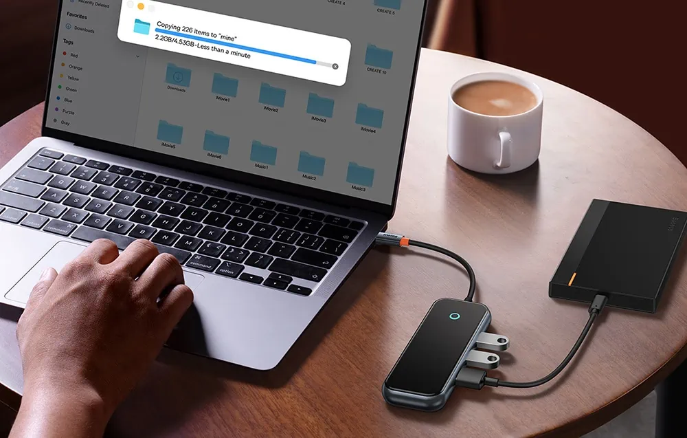 Uľahčite si prácu pomocou rozbočovača Baseus AcmeJoy 4 v 1! Zariadenie má až 4 porty – 3 x USB 3.0, USB-C a zabudovaný kábel USB-C. Umožňuje prenos dát rýchlosťou až 500 MB/s a rýchle nabíjanie zariadení PD 100 W. Okrem toho sa vyznačuje štýlovým a inovatívnym dizajnom.