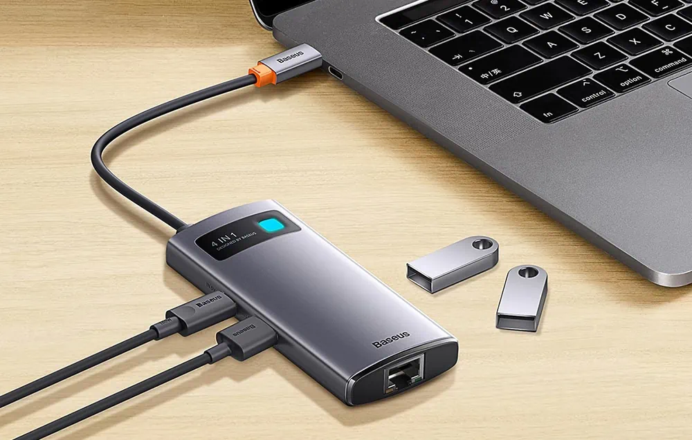 Použite len jeden vstup USB-C na svojom notebooku a získajte možnosť pripojiť k nemu niekoľko rôznych zariadení. Rozbočovač od spoločnosti Baseus je vybavený 4 portami, napríklad 3 USB 3.0 a RJ45 Ethernet. Teraz môžete ľahko zvýšiť funkčnosť svojho počítača a uľahčiť si prácu. Už žiadne problémy s príliš malým počtom portov!