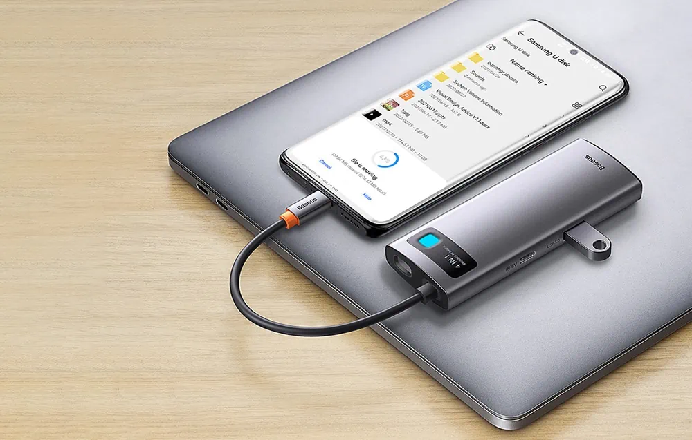 Hľadáte spoľahlivý nástroj, ktorý vám umožní pracovať efektívnejšie? Rozbočovač Baseus Metal Gleam Series 4 v 1 je dokonalou odpoveďou na vaše potreby! Až 4 dostupné porty, blesková rýchlosť prenosu dát až 5 Gb/s a prenosová rýchlosť až 100 Mb/s – pozrite sa, čo všetko ešte získate! Produkt je zároveň mimoriadne odolný a vďaka kompaktným rozmerom ho môžete mať vždy so sebou.