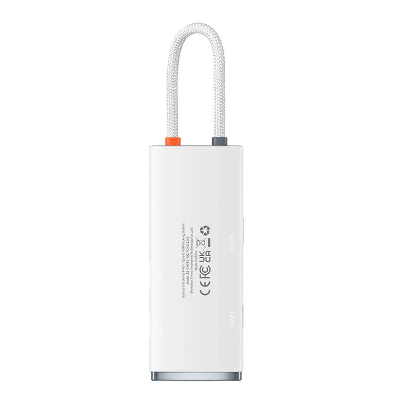 Rozbočovač 6v1 radu Baseus Lite, USB-C na 2x USB 3.0 + HDMI + USB-C + TF/SD (biely)