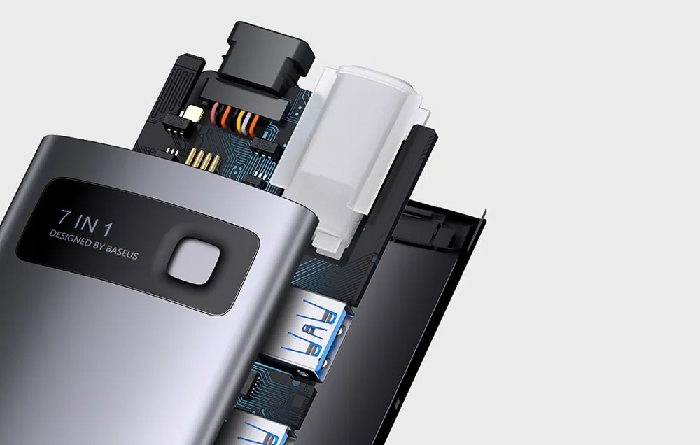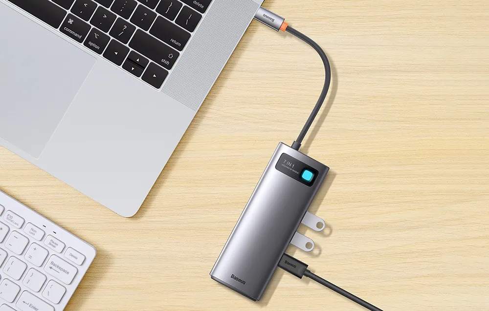 Použite len jeden vstup USB-C na svojom notebooku a získajte možnosť pripojiť k nemu niekoľko rôznych zariadení. Rozbočovač od spoločnosti Baseus je vybavený 7 portami, ako napríklad USB-C PD, 2 HDMI, 3 USB 3.0 a RJ45 Ethernet. Teraz môžete ľahko rozšíriť funkčnosť svojho počítača a uľahčiť si prácu. Už žiadne problémy s príliš malým počtom portov!