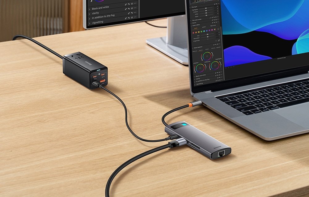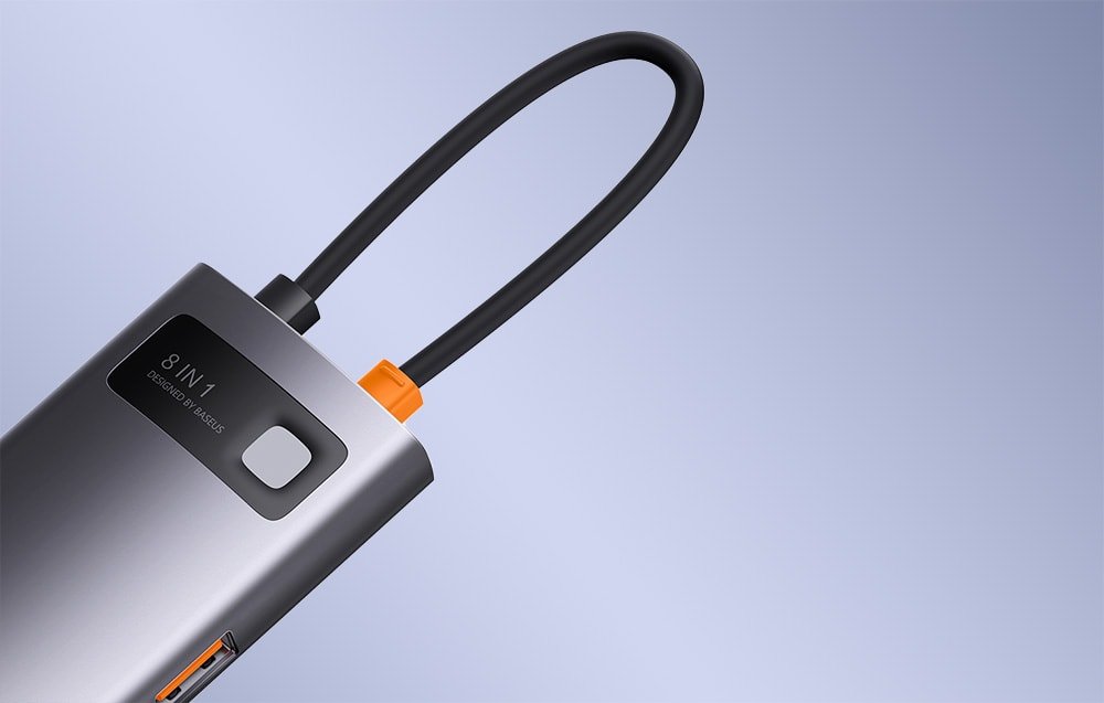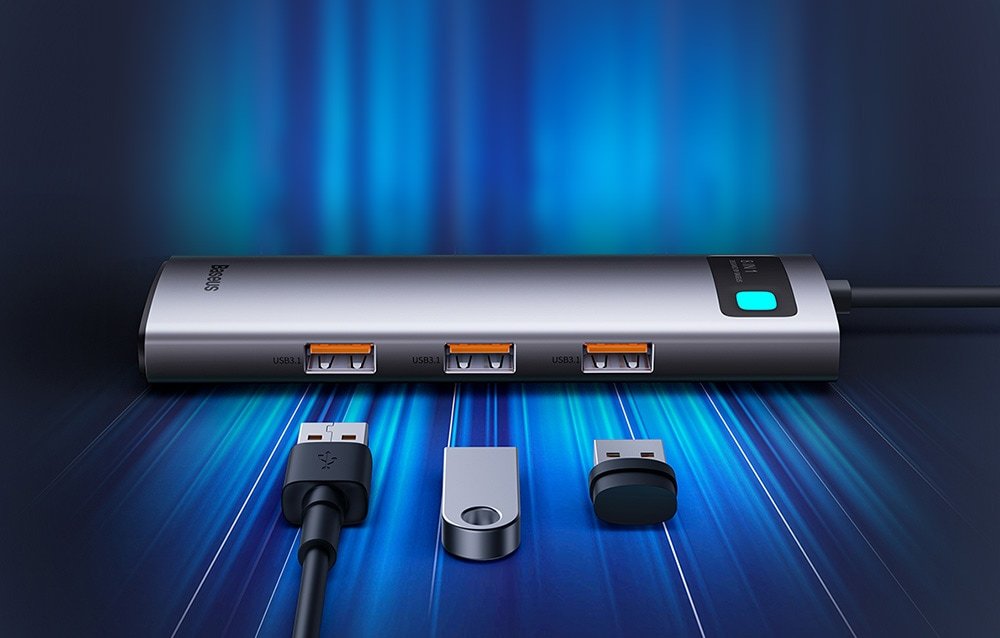 Rozbočovač Baseus je vybavený portom RJ45, ktorý podporuje prenos signálu rýchlosťou 1000/100/10 Mb/s. Vďaka tomu si môžete vychutnať rýchle, stabilné a pohodlné pripojenie. Navyše podporuje protokol rýchleho nabíjania PD 100 W, ktorý vám umožní okamžite obnoviť energiu zariadení, ako je smartfón, tablet alebo notebook.