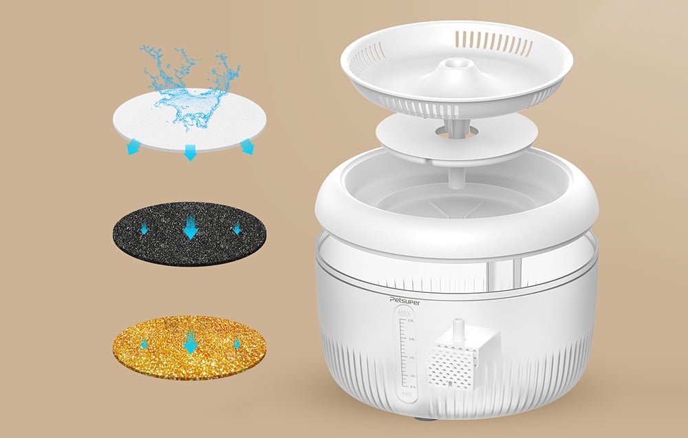 Ďalšou výhodou fontány je pokročilý filtračný systém, ktorý účinne odstraňuje chlpy, zvyšky krmiva, ťažké kovy a iné škodlivé častice. Môžete si tak byť istí, že váš domáci miláčik pije len čerstvú, čistú a bezpečnú vodu.