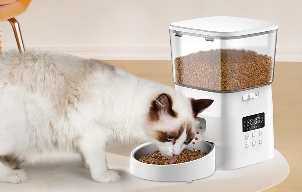 Dávkovač sa vyznačuje kapacitou 2 litre, takže je dostatočne malý na to, aby nezaberal príliš veľa cenného miesta v byte, a zároveň dostatočne veľký na to, aby v ňom uložené krmivo vydržalo až 10 dní. Môžete teda ísť na večierok alebo na výlet bez obáv, že vašim domácim miláčikom dôjde jedlo.