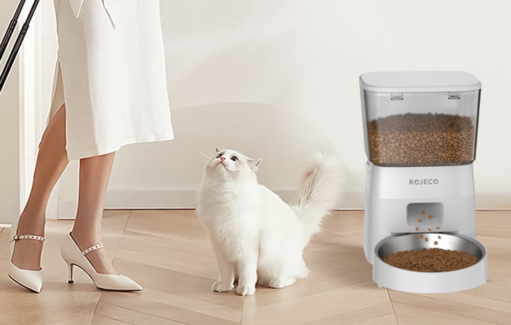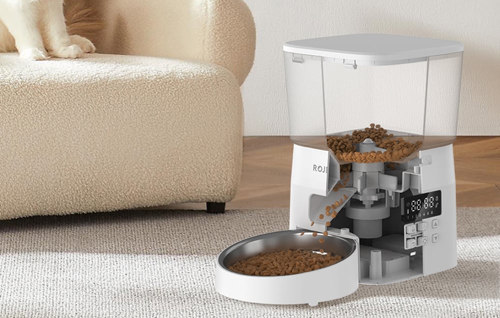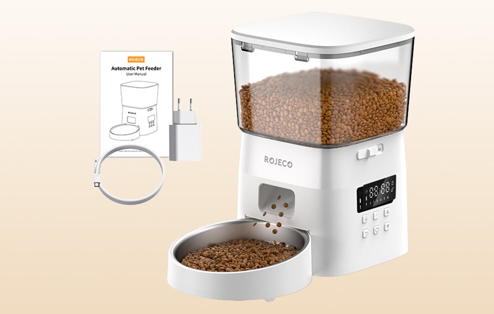 Postarajte sa o zdravú stravu svojho domáceho maznáčika. Inteligentný dávkovač krmiva pre domáce zvieratá Rojeco má objem 2 l a umožňuje plánovať rozvrhy kŕmenia. Je navrhnutý tak, aby zabránil zablokovaniu krmiva, a možno ho napájať 2 spôsobmi – zo zásuvky alebo pomocou batérií (nie sú súčasťou balenia). Okrem toho sa na výrobu jeho misky používa vysokokvalitná nehrdzavejúca oceľ, ktorá je veľmi odolná a zdravotne nezávadná.