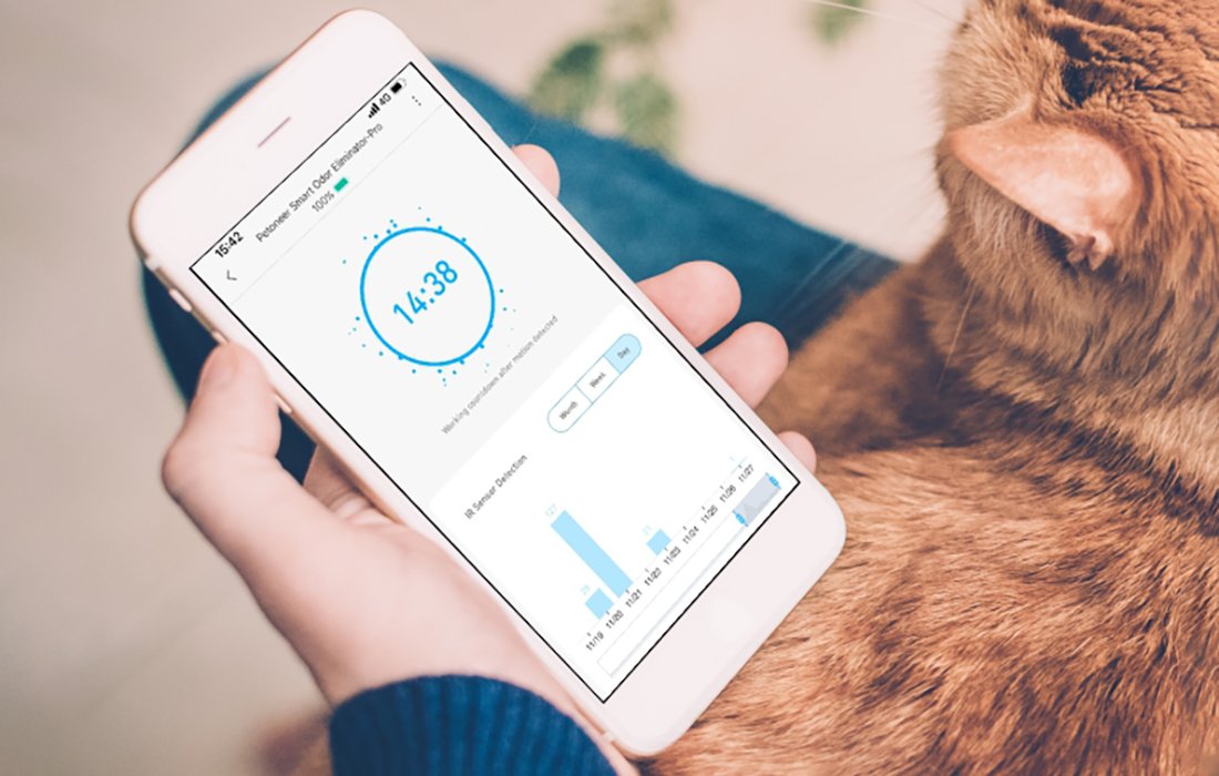 Petoneer Smart Odor Eliminator Pro vám umožní zabudnúť na nepríjemný zápach pochádzajúci z mačacieho záchoda alebo z iných miest. Poskytuje účinnú sterilizáciu a dezodorizáciu bez produkcie zbytočných spotrebných materiálov – je teda šetrný k životnému prostrediu a uľahčuje šetrenie peňazí. Spárujte ho s aplikáciou a získajte prístup k množstvu užitočných informácií. Zariadenie je vybavené infračerveným snímačom, ktorý rozpozná prítomnosť vášho domáceho maznáčika. Odolná batéria zabezpečuje až 4-7 dní používania zariadenia, ktorého kompaktné rozmery ho predurčujú na mnohé aplikácie.