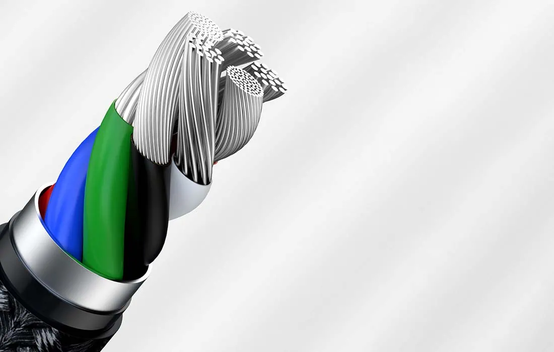 Vysokokvalitné materiály zaručujú odolnosť kábla. Konštrukcia kábla pozostáva okrem iného z prvkov vyrobených zo zinkovej zliatiny, ktoré sú pokryté UV povlakom. Vďaka tomu sú odolné voči oxidácii a vyblednutiu. Ďalšie prvky sú vyrobené z gumového materiálu, ktorého úlohou je chrániť kovové konce zástrčiek a telefónnych portov. Nylonový opletený plášť chráni kábel zvonku, takže je odolný voči deformácii a poškodeniu v dôsledku častého ohýbania. Súčasťou balenia je suchý zips, ktorým ho môžete po zložení upevniť.