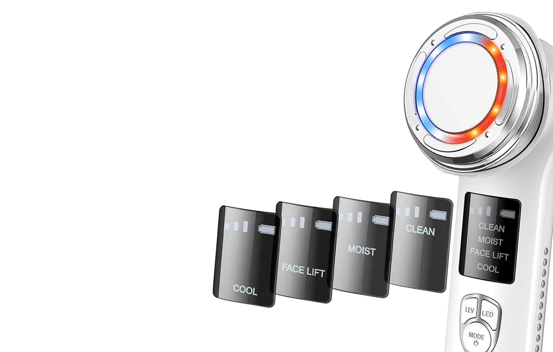 Zariadenie využíva mikroprúdy EMS na vyhladenie vrások a spevnenie pokožky. Intenzitu tohto ošetrenia si môžete nastaviť v 3 úrovniach. Modré svetlo navyše pomôže v boji proti akné a červené svetlo spomalí proces starnutia a zníži výskyt vrások.