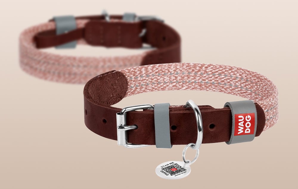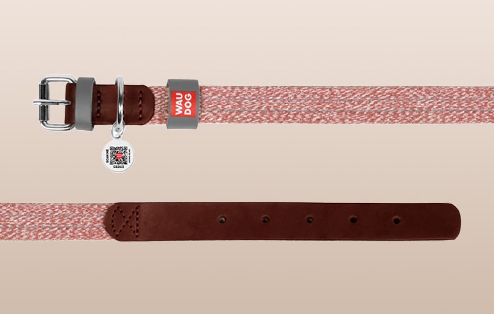Obojok pre psa z prírodnej kože a recyklovaného materiálu s QR kódom Waudog veľkosť L, šírka 25 mm (hnedý).